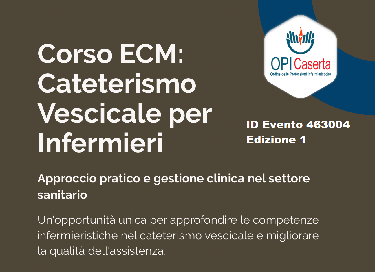 L’Ordine delle Professioni Infermieristiche di CASERTA organizza un Corso di formazione valido per il Programma di Educazione Continua in Medicina dal titolo: